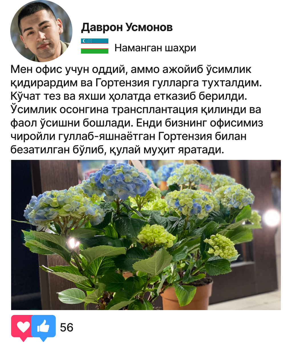 Ўзингизнинг эксклюзив гортензияларингизни ўстиринг ва ҳар куни чиройли гуллардан баҳраманд бўлинг!